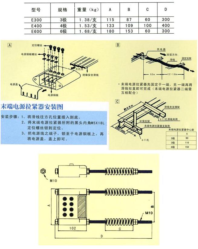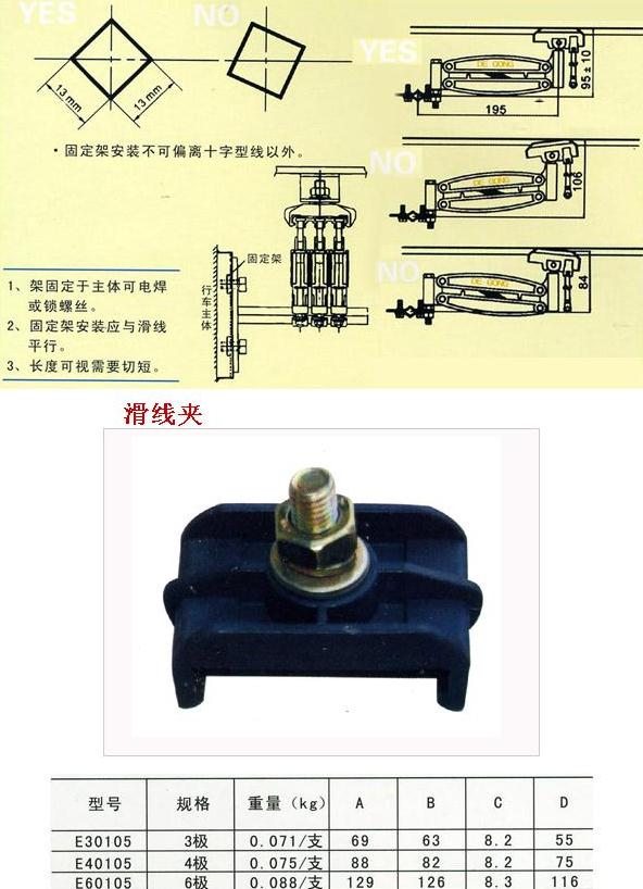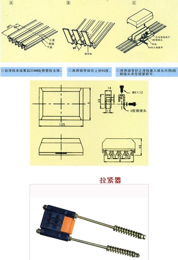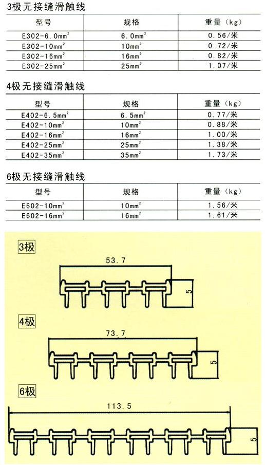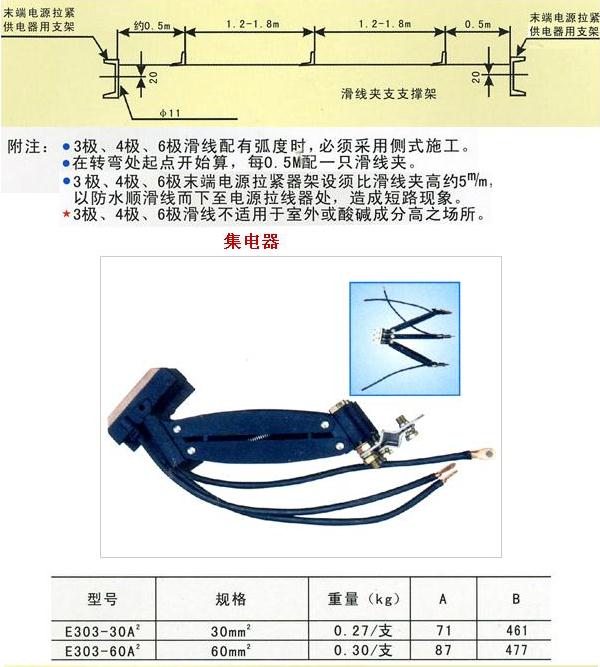 柔性一體式滑觸線是以無(wú)氧銅(導(dǎo)電率達(dá)99.99%)輸送電源、銅導(dǎo)體之厚度厚(一般標(biāo)準(zhǔn)厚為2.8m/m×10W)、壓降小、導(dǎo)電率倍佳;可根據(jù)用戶的車間長(zhǎng)度或用戶的需求來(lái)配一條以之相同長(zhǎng)度的安全電軌,使整個(gè)車間安全配電中間沒有任何接口,真正解決了國(guó)產(chǎn)滑觸線因接口多經(jīng)常卡住集電刷而造成短路或不能運(yùn)行的問(wèn)題。并且適用于曲線、弧形及高低行走的設(shè)計(jì),并且安裝簡(jiǎn)便。從而使整套天車工程美觀、整潔又安全。產(chǎn)品有3P、